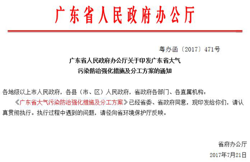 關(guān)于廣東省大氣污染防治強化措施及分工方案