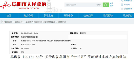 安徽阜陽發布:“十三五”節能減排實施方案