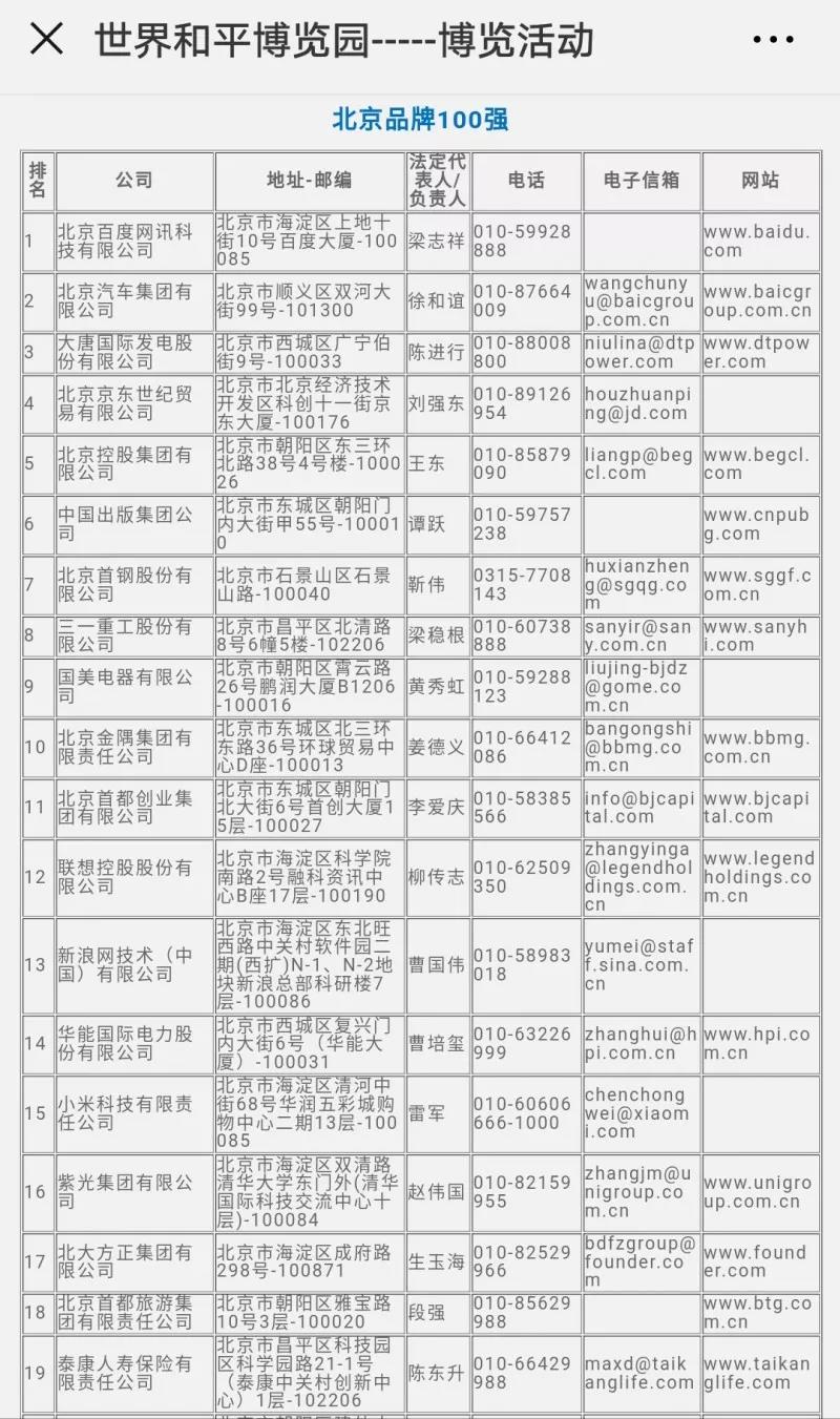 在此次北京品牌百強企業名單中,像平時我們耳熟能詳的的企業如百度、新浪、北汽、小米等等就紛紛上榜。