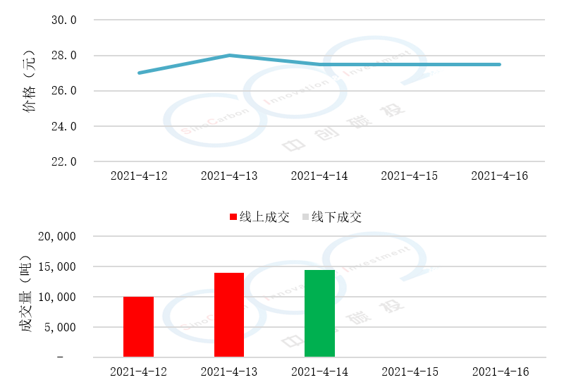 線上成交價(jià)最低為27.00元,最高為28.00元,平均碳價(jià)為27.50元。
