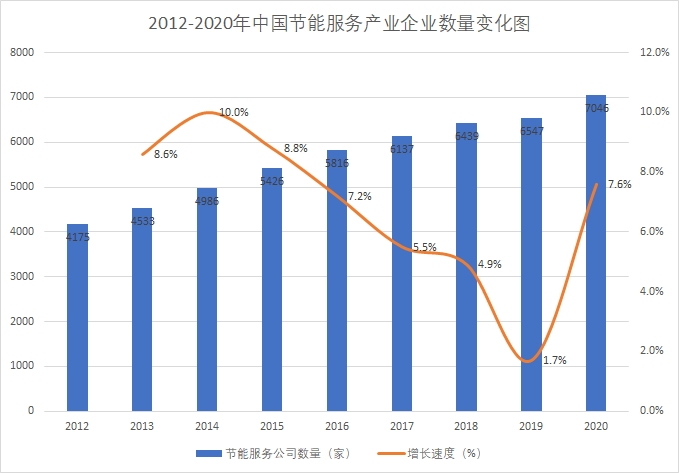 2012-2020年,全國從事節(jié)能服務(wù)業(yè)務(wù)的企業(yè)數(shù)量逐年上升,2020年增速有所提升。