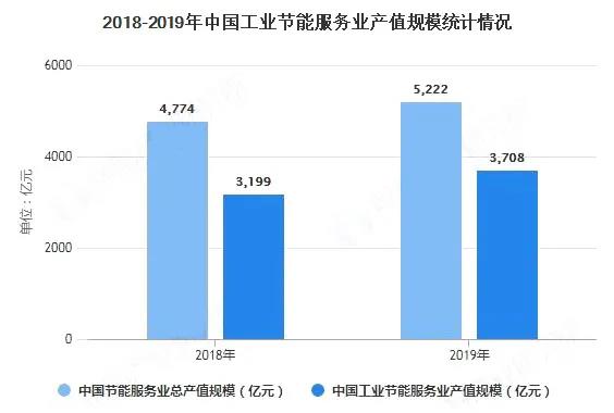 近年來,節(jié)能服務(wù)產(chǎn)業(yè)總產(chǎn)值不斷增長,呈逐年上漲趨勢。中國節(jié)能協(xié)會數(shù)據(jù)顯示,2019年我國節(jié)能服務(wù)產(chǎn)業(yè)總產(chǎn)值達(dá)5222億元,同比增長9.38%。根據(jù)《“十三五”節(jié)能環(huán)保產(chǎn)業(yè)發(fā)展規(guī)劃》,到2020年節(jié)能服務(wù)業(yè)總產(chǎn)值達(dá)到6000億元。我國節(jié)能服務(wù)行業(yè)潛力巨大。