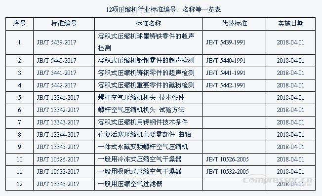 國家壓標(biāo)委發(fā)布壓縮機(jī)行業(yè)5項國家標(biāo)準(zhǔn)和12項行業(yè)標(biāo)準(zhǔn)